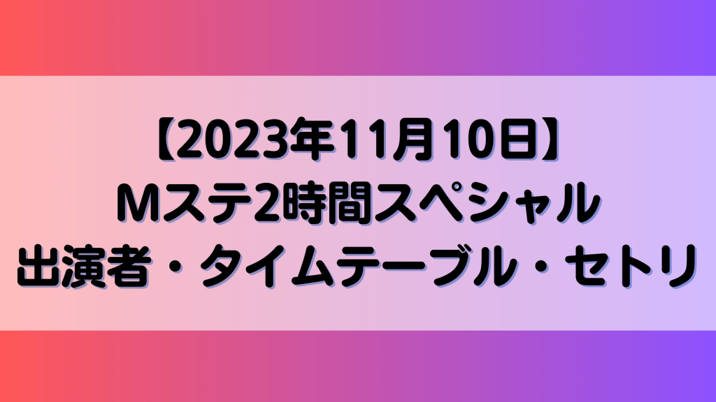 Mステ2時間スペシャル11/10出演者は?タイムテーブルとセトリも紹介